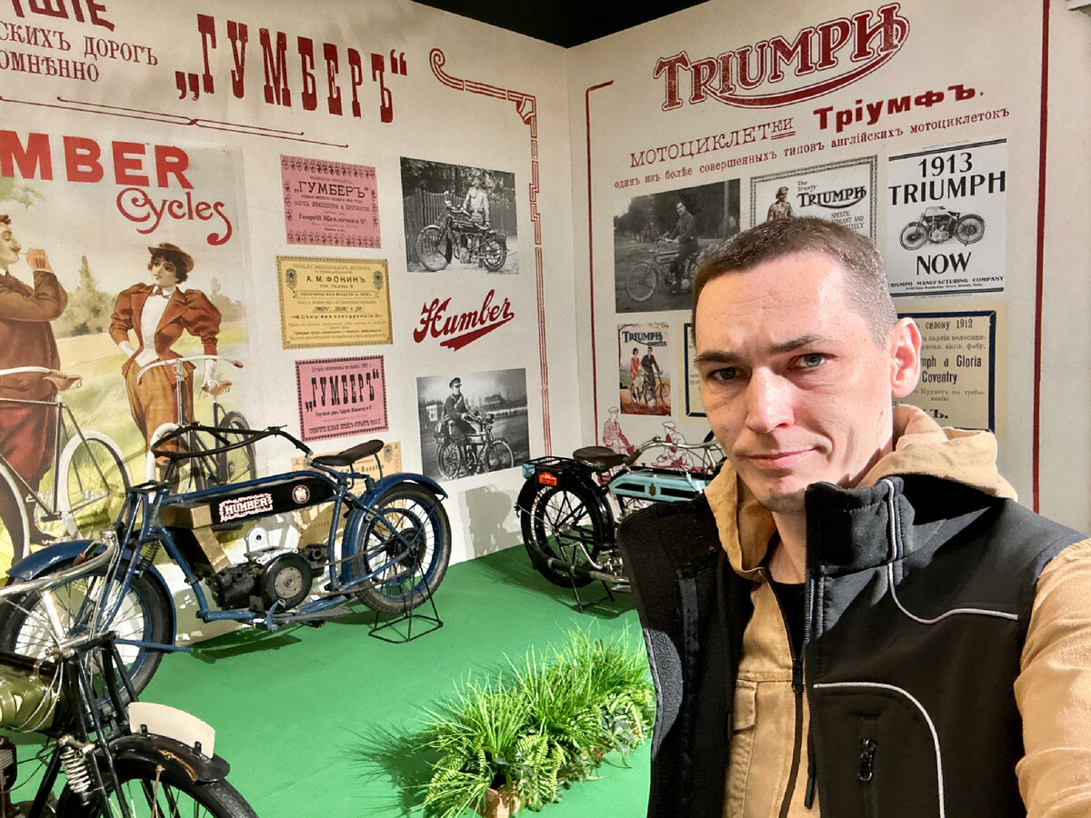 В предыдущей части мы познакомились с Бертом Монро, установившим рекорд скорости на стареньком мотоцикле марки Indian. Выставка Первые Моторы России. Наши дни. Несколько фотографий без комментариев, чтобы отдохнуть и просто посмотреть на красивые вещи. Помните, я говорил про ременной привод? Обратите внимание на этот мотоцикл. Тормоза в то время были тоже весьма посредственны. Обычная деревянная колодка, трущаяся о дополнительный обод на колесе. А концы приводного ремня либо сшивали, либо соединяли через звено цепи, как на правой фотографии. К слову, это отечественный мотоцикл марки Рев-Дукс 1910 года. Кроме мотоциклов на выставке были представлены и автомобили, конечно. В 1913 году в Санкт-Петербурге насчитывалось 2036 частных автомобилей, среди них было пять автомобилей марки Phanomobile. Странные трёхколёсные повозки с двигателем, расположенным на переднем колесе. Они зарекомендовали себя как дешёвые, экономичные и недорогие в обслуживании автомобили. Двигатель которых и