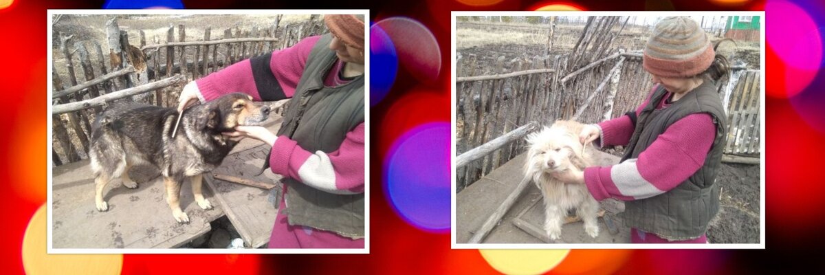 В моем случае - это не рубаха, а полушалок. Изготовила я ее из пуха нашей собаки Пуськи, которую вычесываю по весне, когда начинает теплеть и у собак наступает линька. Пух у нашей собачки мягкий, ость в нем не заметна. Но и Мару вычесываю - у нее подшерсток хоть и короткий, но в пряжу идет без проблем. Когда были козы - и их расчесывала по весне и все "добытое" пускала в дело. Дальше пух приносила домой - теребить. Чески у меня самодельные - дощечки с набитыми в них гвоздиками, но ничего, работают неплохо. Конечно, оренбургский платок не выйдет, но просто тёплая вещица - вполне! Затем веревочкой привязывала кудель на прялку, сбитую на скорую руку из подвернувшихся досочек. На прялке вверху гвоздик, за который цепляется мешочек с клубком ниток на основу (я брала х/б, более-менее подходящую по цвету) К концу нитки привязывала веретено, раскручивала и, когда скручивание доходило до кудельки, подсовывала пушинки. Когда веретено опускалось до пола, наматывала нитку на него, опять привязывал
