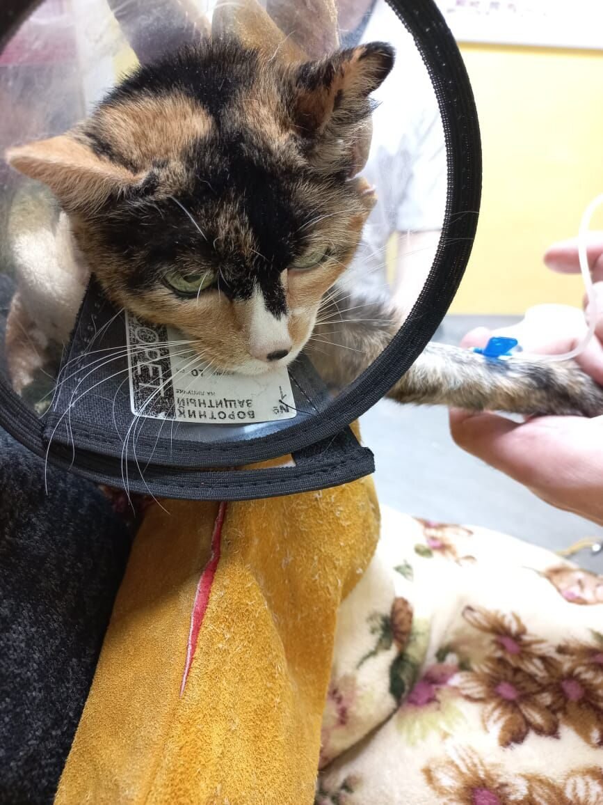 Кошку , завернутую в спортивную мастерку, нашла женщина, гуляя с собакой возле дома. Вялая, не реагирующая на собаку и человека, истощенная... Забрали, отвезли в клинику.. Диагноз- отравление. Кто и за что с ней так останется загадкой. Кошке , как сказали в клинике, не больше двух лет, 100% домашняя. Но в стрессе и на всех начала шипеть. Капельницы, уколы и после восстановления, на что очень надеемся, будет стерилизация, а потом уже и поиск дома для трехцветной красотки. Мечты мечтой, а пока лечение и восстановление. Помощь примем любую, даже поддержка добрым словом для нас много значит) карта сб.банка 2202205025034890( Инна Валерьевна Г).привязана к т. +79147395776
