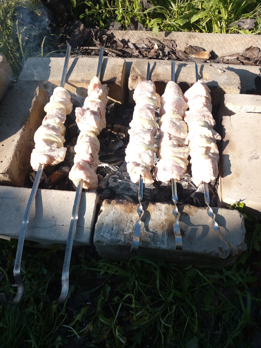 Немного куриной грудки и мяса. Решила на мангале пожарить. Железный одноразовый у меня развалился и я такой из кирпичей соорудила ещё осенью. Намного лучше железного, а мясо не жарила с Нового года. Вообще, уже нельзя ничего жечь штрафуют. Приходится рисковать. Ветра не было, но я всё равно очень аккуратна. Всегда слежу за костром. Фанька со мной, конечно, а кошка кругами где-то гуляет рядом. Огород пока открыт для собаки. Они у меня обе обработаны спреем от блох и клещей и Бог миловал. Все жалуются клещей много. Надо ещё ошейники купить на всякий случай. Есть герои такую траву подёргать и начать что-то сажать. Очень удивлюсь, если таковые нашлись бы. Советчиков много, а по-честному, взялись бы? В том году, нанятый мужчина, сначала косил, потом пахал. Руками нереально. Много лет неухожено. Быстро не получится руками сделать. Не представляю как это можно сделать. Чтобы Фаню сфотографировать пришлось подманивать на доску, где шашлык лежал. Получилось. Опять странные люди пишут про