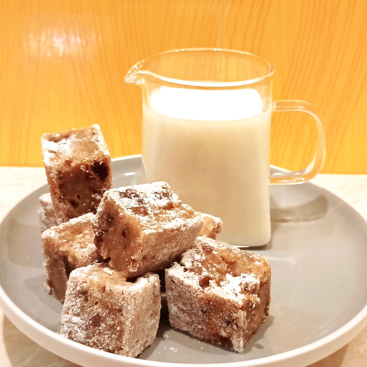 Пирог получается ароматным, сладким, с восточной ноткой, подаренной корицей и финиками. Выпечка влажная и сытная, но с бананами всегда так, съел небольшой кусочек и вроде достаточно. И захотелось из пирога сделать маленькие пирожные - кубики обсыпанные со всех сторон сахарной пудрой. Рецепт пирога: Сухие ингредиенты 170 г мука 1,5 ч ложки разрыхлителя 1 ч л молотой корицы 1/2 ч л ванильного сахара 1/2 ч л соли Влажные ингредиенты 2 банана 140 г сладкого яблочного пюре 70 г очищенных фиников 100 г молока, если взять овсяное молоко, то выпечка будет постной 2 ст л растительного масла Бананы хорошо размять вилкой, финики не крупно нарезать. Соединить все продукты, добавить молоко и масло. Форму смазать маслом, форма 20 см в диаметре. Выпекаю при 170° на среднем уровне духовки 30 - 35 минут, потом примерно 10 - 15 минут при 160°, готовность проверяю деревянной шпажкой. Остужаем и посыпаем сахарной пудрой. Пирог готов, рецепт очень прост, можно поручить выпечку детям! Приятного аппе