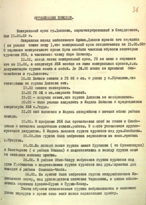 В повести «Высшей категории трудности» Юрия Ярового о гибели группы Дятлова название поселка Вижай трансформируется в Бинсай. Прихоть и фантазия автора повести? Отнюдь. Если мы внимательно (и даже не очень внимательно) будем читать уголовное дело о гибели туристов в районе горы Отортен, то заметим, что в «Организация поисков» на странице 36 дела в 14 строке в слове «Вижай» допущена ошибка. Винсай. Вместо буквы «ж» опечатка – «нс». Схематически выглядит похоже. Не достает только поперечной «перекладинки» с правой стороны. Полностью эта строка выглядит следующим образом: И имеет не одну, а две опечатки, одна из которых нечитабельно «запечатана» поверх первично напечатанной буквы. По логике повествования перед нами текст следующего содержания: I8.02 ГК ФК и сп.запросил Винсай. Напоминаю, что сокращение ГК ФК и сп. – городской комитет по физической культуре и спорту. После исправления опечатки «ФК» выглядит как «Ф8». Очень похоже, что под «К» «прячется» буква «В». ФВ О чем хотел поведать