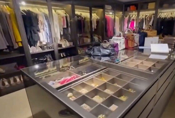 МВД опубликовало видео обысков в доме блогера Елены Блиновской, которую обвиняют в неуплате налогов на сумму 918 млн рублей. На видео показана гардеробная блогера, обстановкой и содержимым похожая на дорогой бутик — на вешалках висит брендовая одежда, а посередине комнаты выставлены витрины с очками, часами и украшениями.