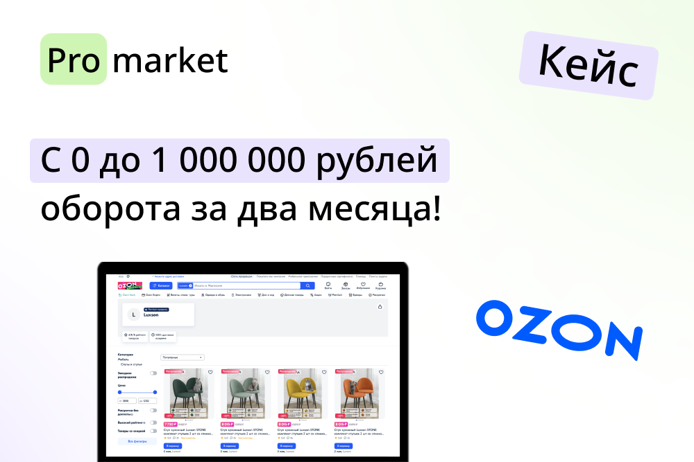 Бренд «Luxson» - производитель универсальной мебели для дома во Владимире. Проблема: Отсутствие понимания лучшей модели продажи. Нехватка опыта в работе с маркетплейсами. Задачи: Продвинуть магазин в ТОП, получить продажи и масштабировать результат. О клиенте Клиент запустил свой магазин на OZON в январе 2023 и сразу обратился в нашу компанию для ведения и продвижения магазина. Первоочередно начали вести работы со стульями одной модели. Этапы работ 1. Анализ рынка и магазина. Провели анализ по следующим критериям рынка, включающий в себя анализ ниши по стульям. В качестве конкурентов проанализировали несколько магазинов в таком же ценовом сегменте и со схожим ассортиментом. 2. Сбор семантики, создание продающего SEO-описания и заполнение характеристик для карточек товара. 3. Проведение самовыкупов для поднятия карточек по позициям. Был сделан расчет по количеству выкупов, подобрали ключи. С выкупами и первыми отзывами появились первые органические продажи. Далее подключение внутренней