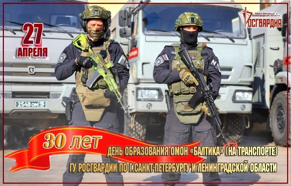 Поздравляем сотрудников и ветеранов ОМОН "Балтика" (на транспорте) Главного управления Росгвардии по г.Санкт-Петербургу и Ленинградской обла