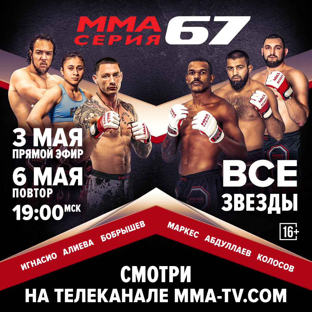 Смотрите турнир «ММА Серия-67: Все звёзды» на телеканале MMA-TV.com и на сайте mma-series.com 3 мая в 19:00 мск