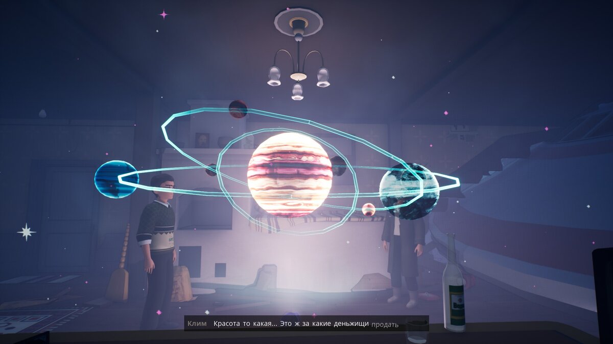 Кужлёвка меня заинтересовала своим смешением жанров и геймплейных фишек: это и бродилка, и головоломки, и решения с последствиями. В какой-то момент даже показалось, что геймплей будет строиться по принципу игры "Papers, please!", когда Валерию Михайловичу нужно было выбирать, кому разрешить войти в тарелку и чьё желание будет исполнено.
