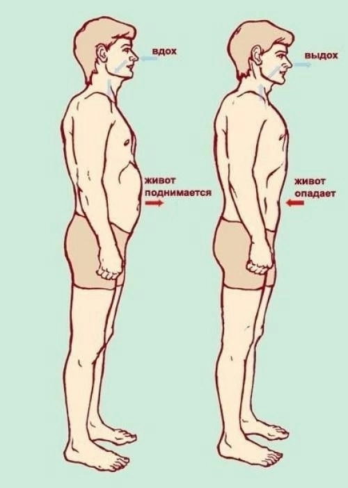 Упражнение 1: Глубоко вдохните животом, максимально выпячивая брюшную стенку. Раз, два, три, четыре, пять. Расслабились, выдохнули весь воздух через рот. Втянули живот в себя, подтягивая его вверх к желудку. Как будто вы хотите спрятать его под рёбра. Задержали дыхание. Раз, два, три. Снова вдохнули, повторяя упражнение столько раз, сколько вам лет. Если вы не можете выполнить сразу такое количество повторов, то в течение дня продолжите его делать. Ведь это упражнение можно выполнять и стоя, и сидя незаметно для окружающих. Поверьте, это упражнение замечательно справляется с жировыми отложениями на животе и массирует органы брюшной полости. Упражнение 2 «Злая кошка». Встаньте на колени, обопритесь на ладони. Максимально вдохните носом, втягивая живот под рёбра, выгните вверх спину. Опустите голову вниз к груди. У вас должна получиться поза «h» – поза злой кошки, когда она внезапно встретилась с собакой. Задержали дыхание, на счёт восемь выдохнули, расслабились. Вернулись в