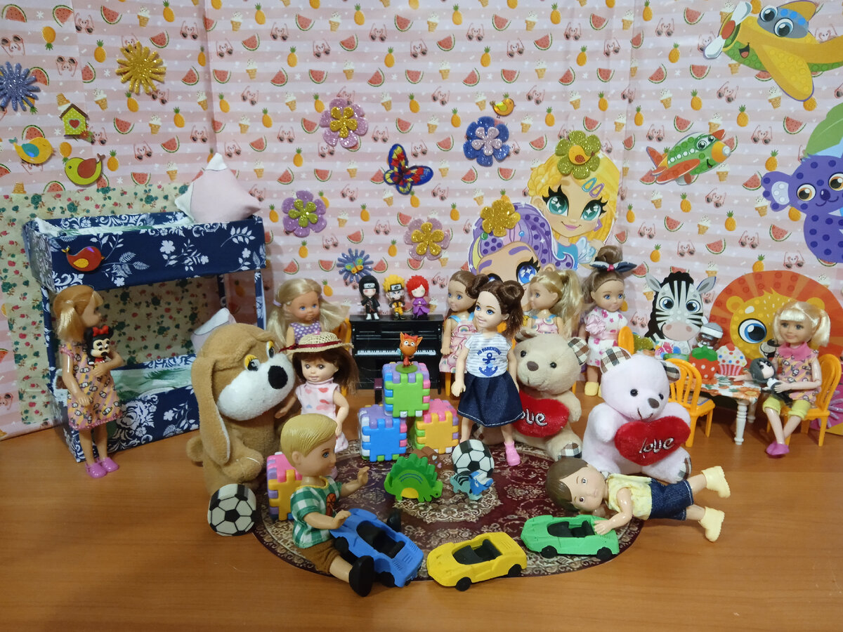 Воспитательница в новой группе встречает малышей. Ева, которая говорила маме, что покажет воспитательнице, как она умеет вставать на мостик, оказалась скромной застенчивой девочкой. Она села на стульчик и долго наблюдала за ребятками. Воспитательница по имени Кира подозвала к себе малышей и сказала, что у них в группе новенькая девочка по имени Ева. С ней надо подружиться и показать, что где находится. Надо научить её не путать наших близнецов. У нас есть Лиля и Миля, и сестры Маша и Даша. Затем она предложила всем ребяткам сесть поближе к ней чтобы послушать интересную сказочку... -А теперь -сказала Кира - мы все встанем в хоровод и споем песенку про дружбу. Миля начинающая, а Лиля замыкающая. -А сейчас все садитесь на стульчики, я напомню вам, что мы делаем перед обедом и будем садиться кушать. Детей накормили вкусным обедом. А потом положили в кроватки спать. И Еве снились хорошие добрые сны. Так прошел её первый день в детском саду. А на этом пока всё. Дальше вы узнаете, почему