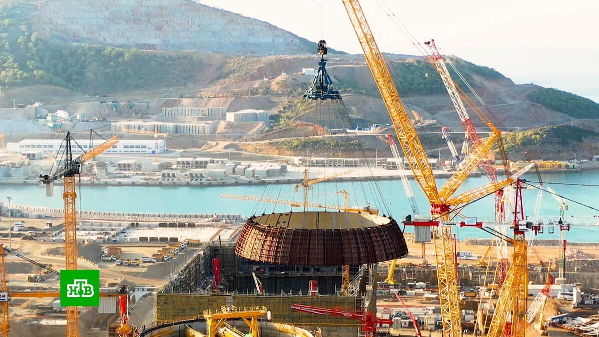 [ Смотреть видео на сайте НТВ ] В Турции несколько часов назад прошла торжественная церемония доставки российского ядерного топлива на первую в стране атомную электростанцию «Аккую», которую строит госкорпорация «Росатом». «Аккую» — это крупнейшая атомная стройка планеты, которую ведет Россия на турецком побережье. С двухсотметровой высоты можно рассмотреть четыре энергоблока в разной степени готовности. 30 тысяч человек трудятся над их возведением ежедневно. До «Аккую» их строили по очереди, а сейчас почти одновременно. Это обеспечивает темп и экономит финансовые ресурсы. Впервые же будет применена модель строй-владей-эксплуатируй, то есть российская АЭС будет продавать энергию Турции. За церемонией по видеосвязи наблюдали Владимир Путин и Реджеп Эрдоган. До этого у них состоялся подробный телефонный разговор о наращивании взаимодействия в разных сферах. В этом году Турция отмечает столетие и рассчитывает на опережение графика стройки АЭС — в частности, на досрочный запуск первого эне