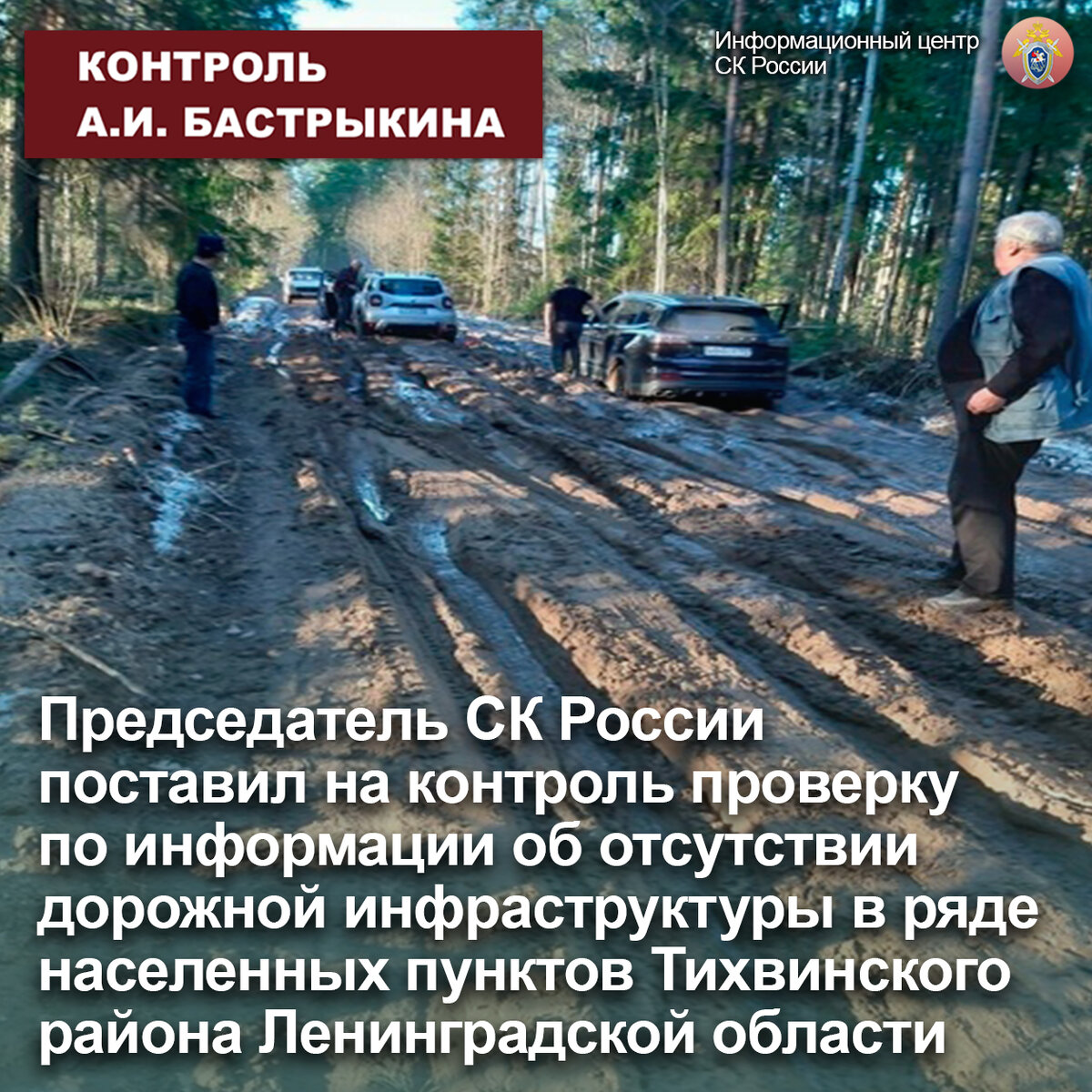 Председатель СК России поставил на контроль проверку по информации об отсутствии дорожной инфраструктуры в ряде населенных пунктов Тихвинского района Ленинградской области