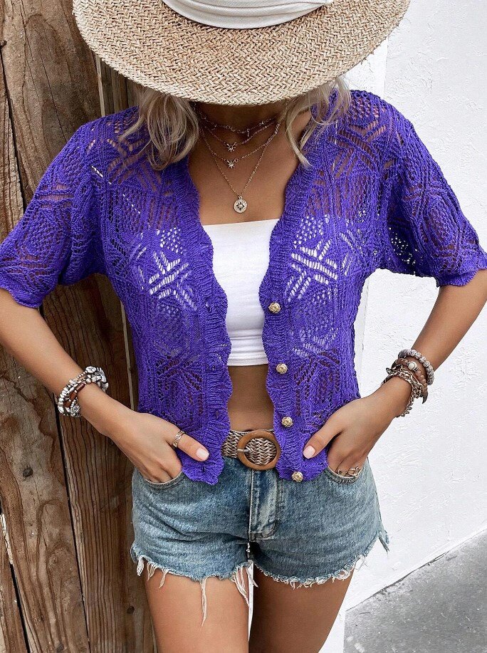 Сегодня добавлю в копилочку интересные модели. На сайте shein они подписаны как кардиганы. Все они: ажурные, с коротким рукавом и на пуговицах.