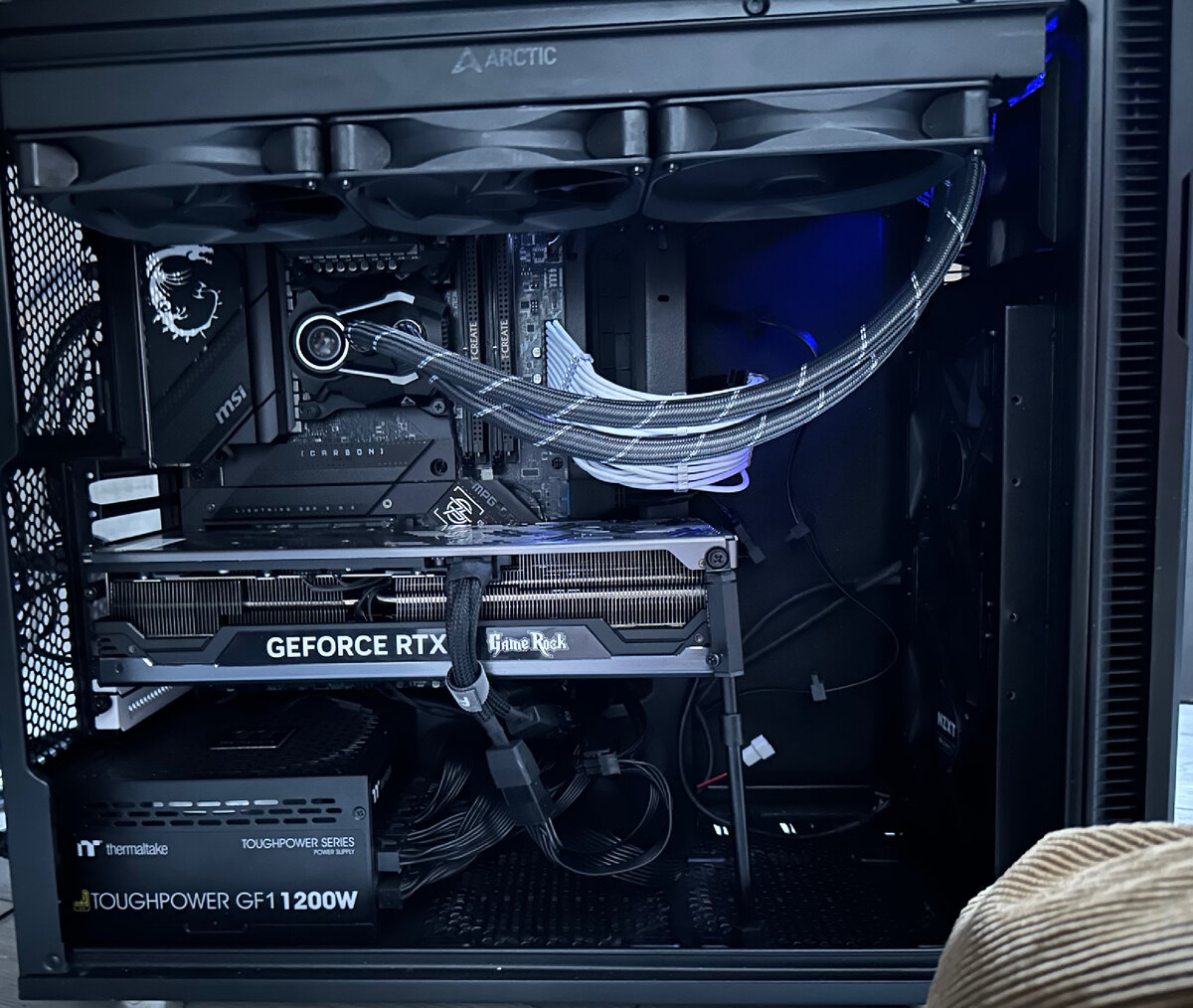 процессор - i9 13900K водяное охлаждение - Arctic liquid freezer II 420мм ( кулера NZXT) видеокарта- RTX 4080 palit gamerock оперативная память - 32gb DDR5 T-create 6400 материнская плата - MSI Z790 Carbon wi-fi блок питания - thermaltake toughpower GF1 1200W корпус - Fractal design define R5