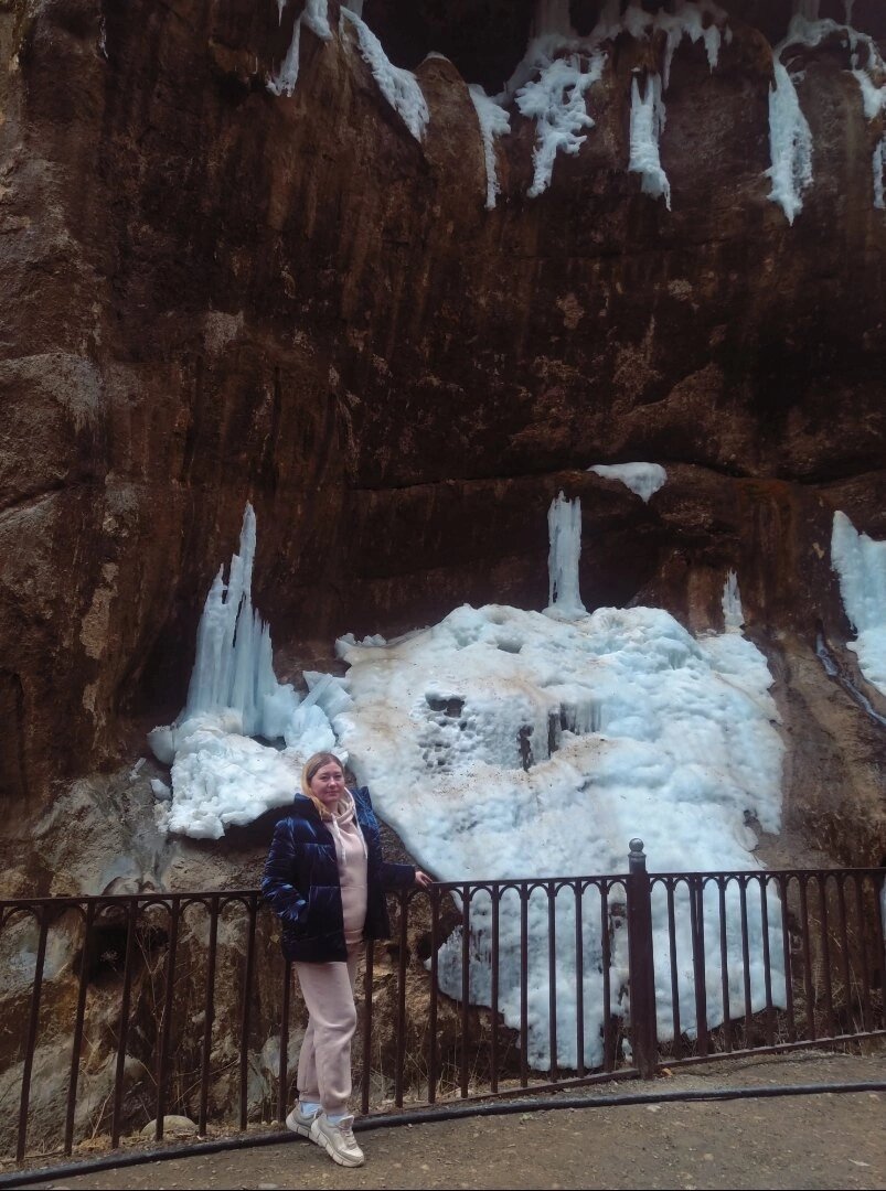 И завершающим местом нашей экскурсии стали Чегемские водопады в Кабардино Балкарии. Итого: сегодня мы проехали около 400 км и большую часть из них по грунтовой дороге.Чегемские водопады – это визитная карточка Кабардино-Балкарии. Здесь сплетаются между собой две стихии – вода и камень, образуя невероятные и, порой, фантастические пейзажи.Летом Большой Чегемский водопад в виде водяной пыли радужно сверкает на солнце, а зимой застывает в виде многочисленных ледяных глыб. Это место обязательно к посещению, и тем, кто хочет сбежать от цивилизации, и тем, кто ищет что-то необычное. Чегемские водопады в Кабардино-Балкарии состоят из трех водопадов. Самый первый и крупный из них – Адай-Су или «Девичья коса». Он начинается на высоте 200 метров. По легенде, когда-то в горной деревне проживали гордые девушки с длинными волосами. Однажды на них напали разбойники, но они не сдались в плен, а прыгнули со скалы. Их волосы зацепились за камни, образовав водопад Адай-Су. Второй водопад называется