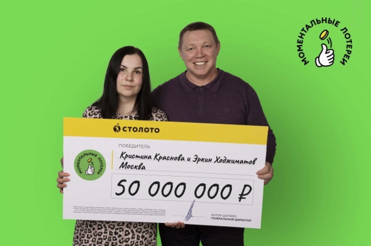 Счастливыми обладателями рекордного выигрыша в моментальных лотереях стали Эркин Ходжиматов и Кристина Краснова из Москвы. Пара всегда участвует в лотереях в тандеме. Счастливый билет они тоже купили вместе. Спустя несколько дней после выигрыша Эркин и Кристина оформили выигрыш в лотерейном центре «Столото» и рассказали историю своей победы.