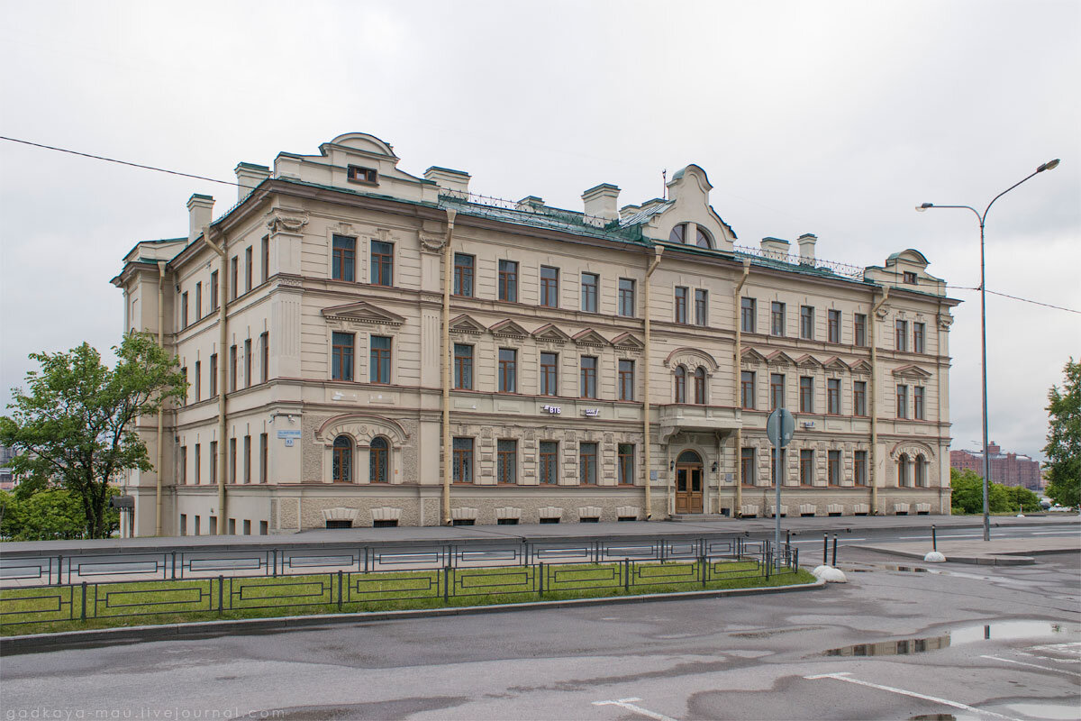 [27.10.2020] Следующий сохранившийся дореволюционный дом на Малоохтинском проспекте - дом церкви св. Марии Магдалины. Построен в 1903 году по проекту техника Якова Игнатьевича Попова. С 1778 года в этом месте стояла кладбищенская церковь св. Марии Магдалины. Церковь сильно выдавалась за линию проспекта, которому приходилось огибать её. В 1938 в связи с предполагаемой реконструкцией Охты Леноблисполком постановил снести церковь и кладбище. Однако закрытый храм каким-то образом уцелел, и после войны в нём устроили кинотеатр "Рассвет". Окончательно снесли здание в 1972-м г. при спрямлении Малоохтинского проспекта.