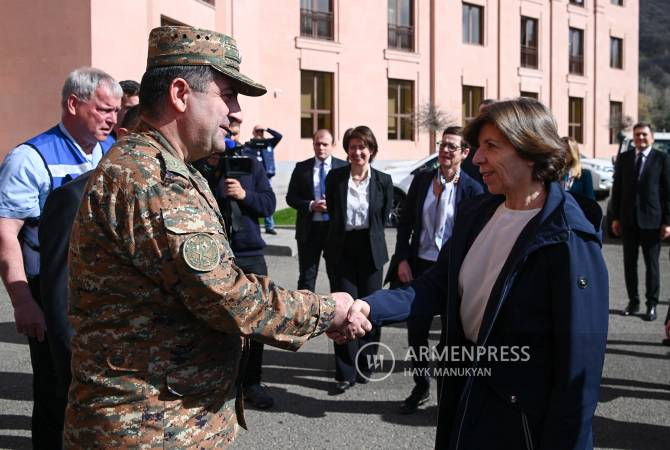 Начальник Генерального штаба ВС Армении Эдуард Асрян высоко оценивает работу наблюдательной миссии Евросоюза в Армении. Как передает корреспондент «Арменпресс», об этом Эдуард Асрян высказался на встрече с министром иностранных дел Франции Катрин Колонна в Джермуке. «Безусловно, я высоко оцениваю наблюдательную работу Европейского Союза в Республике Армения. Эта деятельность сдерживает Азербайджан. Работа вдоль границ Армении ведется очень хорошо», - сказал Асрян. Министр иностранных дел Франции отметила, что сотрудничество между Арменией и миссией наблюдателей ЕС очень положительно. «Эта работа приносит положительные результаты. Благодаря этой наблюдательной работе, мы получаем информацию с места, которая очень полезна для стран-членов ЕС. Это наблюдательная миссия, а не вооруженная, ее цель – просто следить за ситуацией, но в любом случае такое присутствие дает возможность разрядить обстановку», - заявила Катрин Колонна.