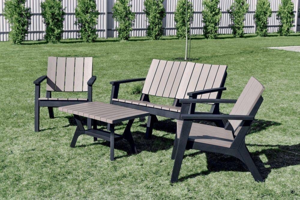 • Столы, каркас и ножки которых выполнены из металла. При этом столешницы и сиденья на креслах изготавливают из дерева, что бы совместить надёжность и естественность.