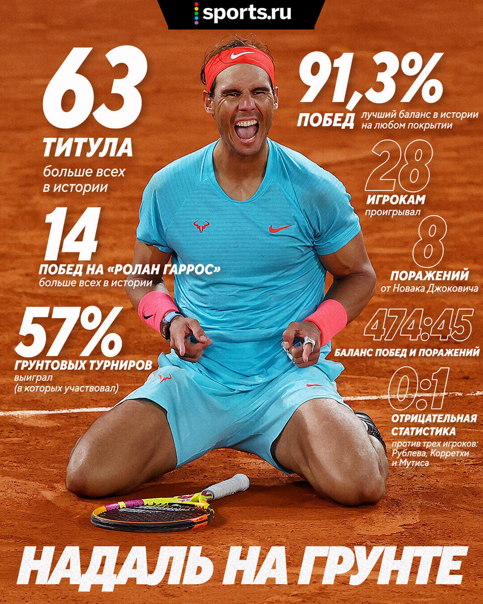 Надаль на грунте – зверь, которых в истории еще не было. Демонстрируем цифрами