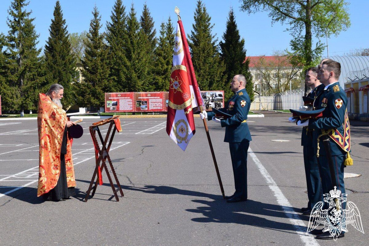 В Нижегородской области на плацу саровского соединения Росгвардии состоялось вручение и освящение боевых знамен двух воинских частей дивизии. Торжественное мероприятие приурочено к ведомственной праздничной дате - 77-й годовщине со Дня образования соединений и воинских частей по охране важных государственных объектов, специальных и воинских грузов Росгвардии. Торжественную церемонию возглавил врио командира дивизии полковник Алексей Решетнев. Почетными гостями стали представители городской администрации, руководства РФЯЦ-ВНИИЭФ, организации ветеранов воинской части и юнармии. Помощник благочинного Саровского округа по взаимодействию с Вооруженными силами и правоохранительными органами протоиерей Владимир Кузнецов совершил чин освящения воинского знамени, во время которого присутствующие молились вместе с ним. В своем выступлении священнослужитель отметил: «Мы являемся свидетелями возрождения традиций русского христолюбивого воинства». Он поздравил личный состав со значимым событием и п