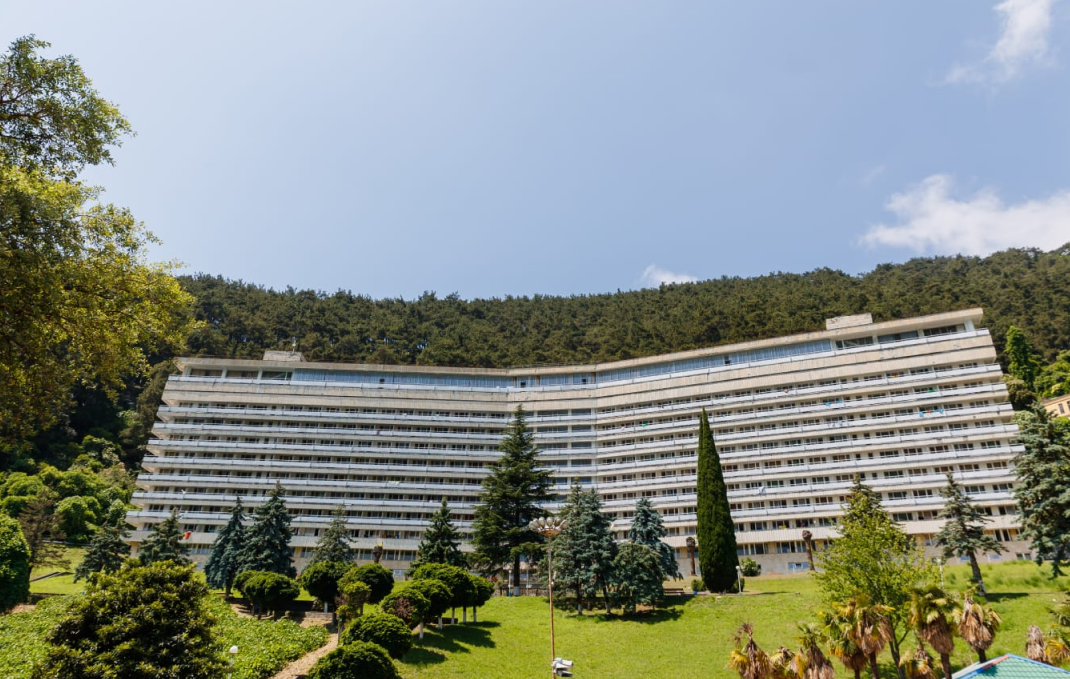 Расположенный на самом берегу Черного моря в древнем городе Гудаута, отель представлен монументальным пятиэтажным зданием с белыми колоннами, напоминающими о временах эпохи колонизаторов. Классическая архитектура и традиционное этническое оформление помогают лучше понять национальную культуру абхазов, а тонкое сочетание в интерьере прошлого и будущего переплетается со всеми удобствами современных технологий.