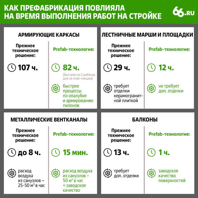 По экспертным оценкам, prefab-технологии за счет параллельной организации процессов могут сократить сроки строительства высотных зданий до четырех месяцев и на 15–20% снизить себестоимость работ.