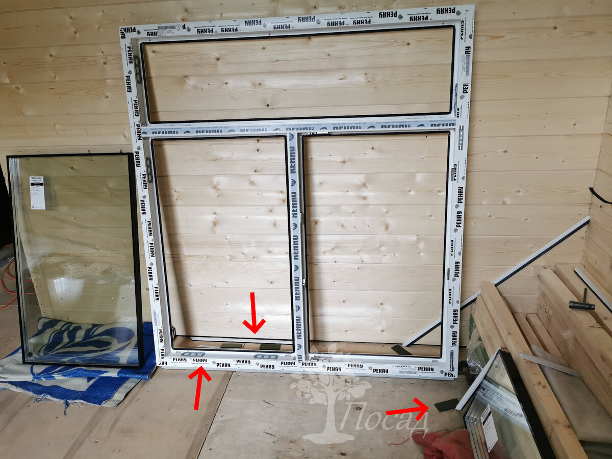 Для того, чтобы этот зазор сохранить при монтаже, между стеклопакетом и рамой на специальных посадочных площадках стоят проставки. На первый взгляд они одинаковые, но толщина их отличается. Обязательно нужно пометить боковые и нижние, чтобы не перепутать их при монтаже.