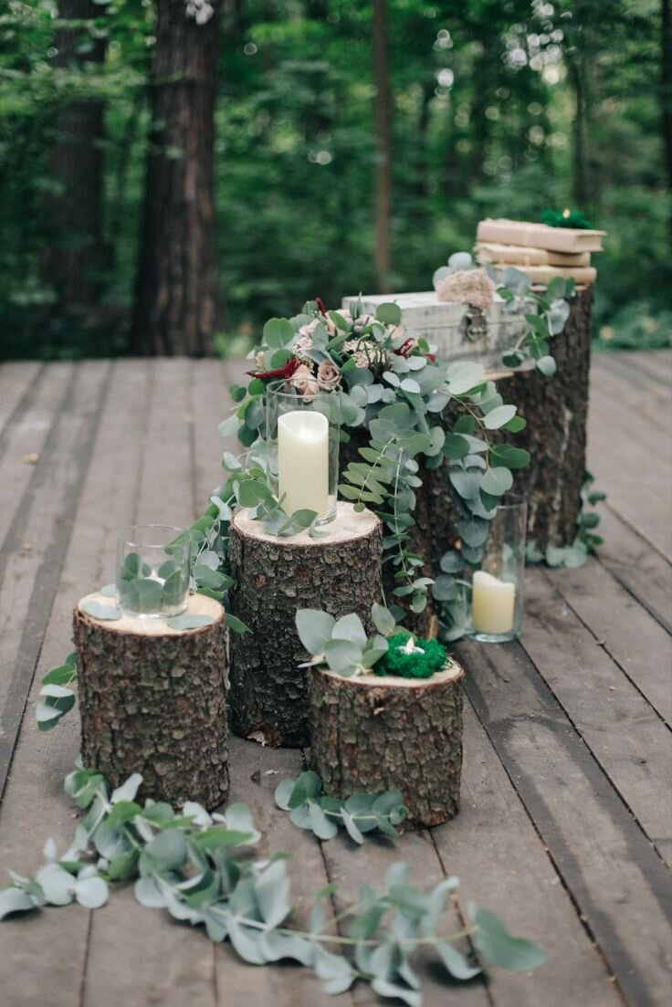 Мода на осознанное потребление и бережное отношение к природе не могла не отразиться на свадебных тенденциях. Для эко-стиля характерно использование натуральных материалов в нейтральных оттенках. Никакого пластика, только фактурное дерево, камень, бумага, неокрашенные хлопок и лён, белые восковые свечи и, конечно же, обилие растений. Самая подходящая локация для такого торжества – тенистая лесная полянка.