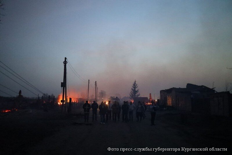 Корнилово Варгашинского муниципального округа эвакуируют В Курганской области горит еще одна деревня. В Корнилово Варгашинского муниципального округа огонь охватил 8 домов и надворных построек на общей площади 600 кв. м. Ландшафтный пожар бушует на 150 га. «Проведена эвакуация населения. На месте работают 38 человек и 7 единиц техники», — сообщили в пресс-службе ГУ МЧС по Курганской области. Напомним, сегодня, 28 апреля, из-за пожара эвакуировали жителей села Юрахлы. Там ланшадфтный пожар площадью 100 га перекинулся на хозяйственные постройки площадью 800 кв. метров. Вчера под Курганом сгорела улица в деревне Логоушка — по данным прокуратуры области, уничтожены 100 строений. Погиб один человек. В тушении были задействованы более 180 человек и 46 единиц техники