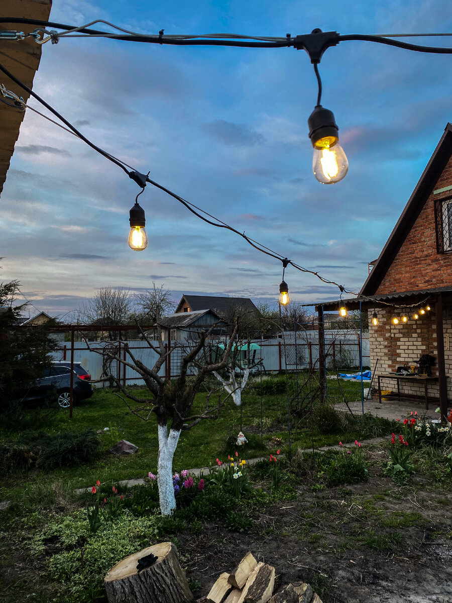 Добрый день, дорогие читатели моего блога. Сегодня я Вам расскажу, как за небольшие деньги добавить садовому участку уюта и индивидуальности. Речь пойдёт об уличной гирлянде, устойчивой к высоким и низким температурам, а также к промоканию. Сказать честно, пару лет назад, для меня подобного рода гирлянды казались некой роскошью из каких-нибудь Американских фильмов. Я и подумать не мог, что выбор подобных изделий настолько велик по демократичным ценам. И вот, насмотревшись в Инстаграме различных блогеров и дизайнеров, я решил украсить свой участок чем то похожим. Замерив предполагаемое место расположения гирлянды, я сделал вывод, что для меня оптимальная длина изделия составляет 15 метров. Итак, замеры сделаны. Затем стоял выбор гирлянды. Я долго бороздил просторы интернета, искал оптимальные варианты и читал отзывы. На выбор были гирлянды стандарта водонепроницаемости ip44 и ip65. Мне, конечно же, хотелось более устойчивое к воде изделие. Так же, было два варианта цоколей под лампы: