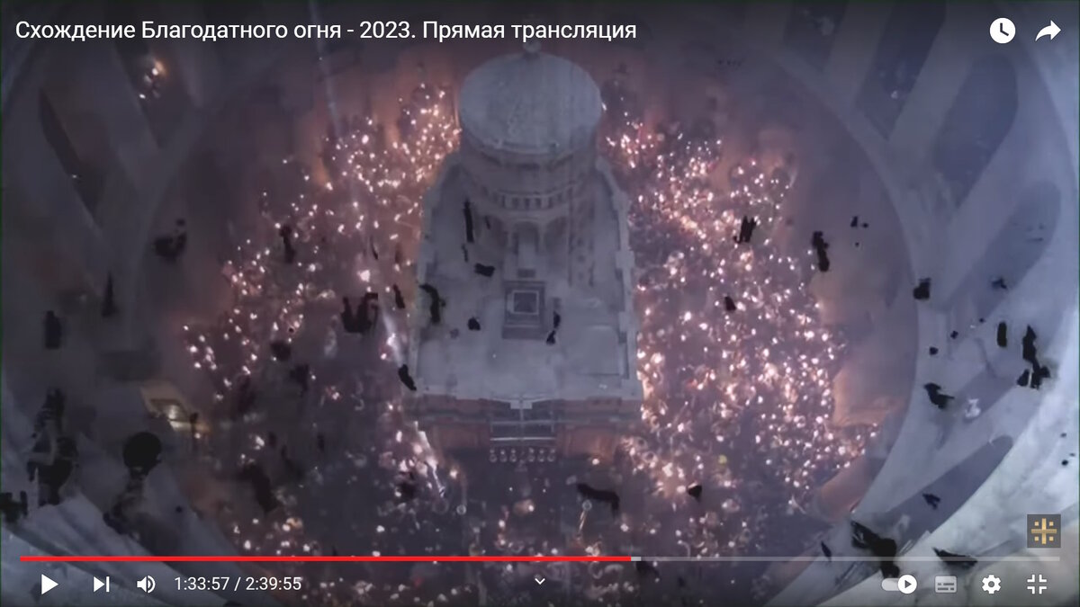 За прямой трансляцией из Иерусалима следили сотни миллионов людей из многих стран. Но похоже, мало кто из них заметил странное событие, что случилось во время богослужения. По крайней мере, все СМИ об этом молчат. Вы можете увидеть это удивительное событие на сайте https://www.youtube.com/live/xEYoF9--RYA?feature=share. Впрочем, через день это видео, похоже, было удалено.