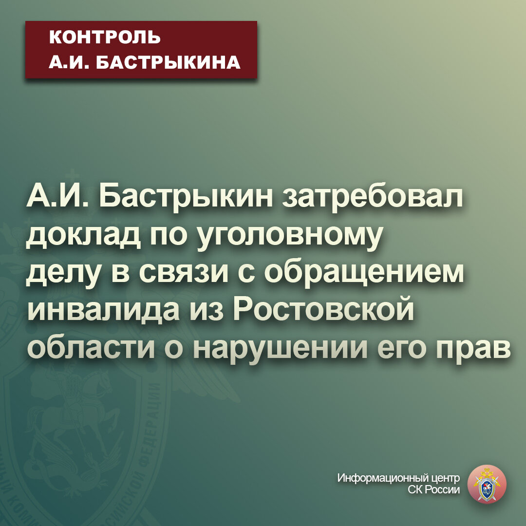 А.И. Бастрыкин затребовал доклад по уголовному делу в связи с обращением инвалида из Ростовской области о нарушении его прав