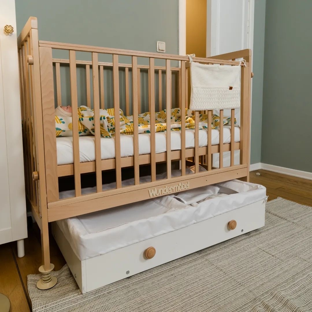 "Это как кроватка с ящиком, только лучше" Примерно так одной фразой можно описать набор мебели Оптима. Почему он лучше? Потому что ящик в нашем случае не встроенный, а наоборот, мобильный. Маленькие прорезиненные колесики позволяют не только удобно выкатывать его, но и в принципе с легкостью перемещать по комнате. А это значит, что и с ящиком MultiSleep на 100% сохраняет свою функциональность. Вы можете также легко менять режимы и, даже приставив кроватку к взрослой, продолжать удобно использовать ящик. Для этого его нужно всего лишь "повернуть лицом" к комнате. Вряд ли бы это удалось, будь он встроенным. Согласны? Сам ящик еще и невероятно вместительный. Разделен на два отсека, которые плотно закрываются клапанами на молниях и надежно защищают содержимое от пыли. В нем можно хранить одежду, постельное белье, игрушки. Оптима – идеальный вариант для маленькой спальни, когда место для хранения все еще нужно, а комод ставить некуда. В набор Оптима входит: ▪︎ Кроватка MultiSleep; ▪︎ Д