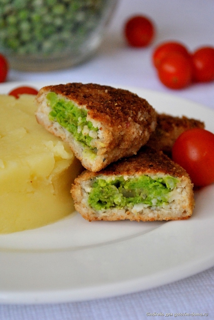 Рецепт : 700 гр филе судака 1 яйцо. 200гр белого хлеба 1 стакан молока 2 луковицы 400гр консервированного горошка 2 яичных желтка 1ст панировочных сухарей Соль, перец по вкусу Растительное масло для обжаривания . Рецепт на 4 порций. Способ приготовления : Лук мелко нарезать . Хлеб размочить в молоке, отжать. Рыбу, половину лука и хлеб пропустить через мясорубку . Добавить яйцо, соль, перец, перемешать. Разогреть в сковороде растительное масло. Обжарить в нем лук, 3 мин. Горошек и лук измельчить в блендере до состояния пюре. Добавить желтки, перемешать. Из рыбного фарша слепить лепешки. Положить в середину каждой по 1ст.л .начинки. Сформировать зразы, обвалять ихв панировочных сухарях. Обжаривать зразы в разогретом масле 4 мин . с каждой стороны .Затем уменьшить огонь, накрыть крышкой и готовить 3 мин. Приятного аппетита ! Кому понравился мой рецепт, поставьте лайк и подпишитесь! Буду всем благодарна !