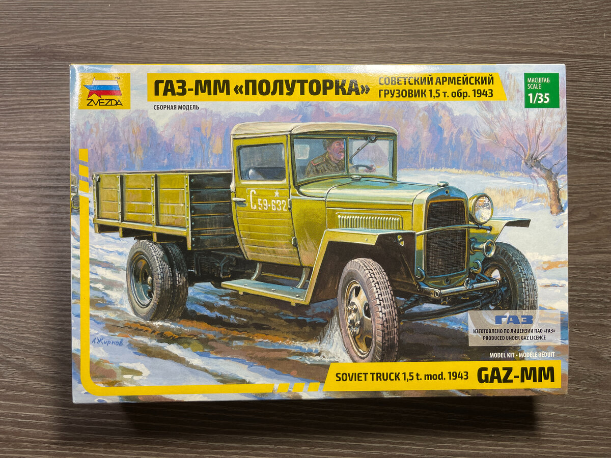 Всем привет! Время есть, есть и полуторка😀 Краткая справка ГАЗ-ММ (полуторка) — советский среднетоннажный грузовой автомобиль Горьковского автомобильного завода грузоподъёмностью 1,5 т (1500 кг), представлявший собой модернизированный вариант полуторки ГАЗ-АА, укомплектованный более мощным двигателем ГАЗ-М (50 л. с.), усиленной подвеской, новым рулевым управлением и карданным валом. Изначально ГАЗ-ММ внешних различий с моделью ГАЗ-АА не имел, но в годы Великой Отечественной войны начался выпуск упрощённой модификации ГАЗ-ММ-В, характерной угловатыми крыльями, отсутствием бампера и рядом других особенностей. О наборе Первоначально набор разработан GAZ-AA версии в 1999 году компанией Toko. После пары лет производства, были доработы детали и уже Восточным экспрессом выпущен перепак данного набора с измененными деталями для версии ММ. С 2006 года Звезда тоже взяла за основу модель от восточного экспресса и перепаковала в свою коробку. Вначале в версию АА, а в 2008 уже версию ММ. После был