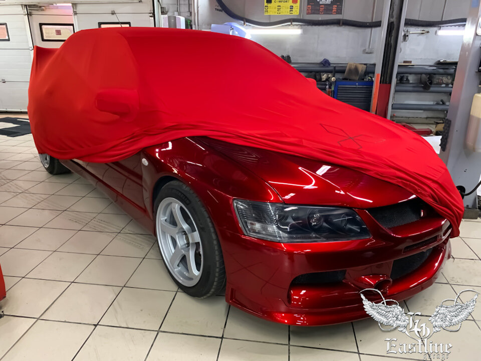 Всем доброго дня! Продолжаем тему защитных авточехлов, и сегодня на очень заряженный японец – Mitsubishi Evolution IX. Впервые этот авто представленный к продаже в 2005 году, а закончил он выходить с конвейера уже в конце 2008. В зависимости от того, для какого региона предназначались автомобили, были представлены разные версии, и в свою очередь, нашему рынку был предназначен Mitsubishi Lancer 9 EVO с 280 сильным двигателем, способный разогнать авто до 250 км/ч, а до первой сотни разгон составил всего 5.7 секунд. Тюнинг-ателье Eastline Garage заряженный Mitsubishi Evolution IX потрясающего насыщенного красного цвета посетил для того, чтобы заполучить себе новую одежду: он приехал за собственным эксклюзивным чехлом для гаражного хранения. Несмотря на то, что эти спорткары перестали выходить с завода ещё в конце 2008 года,