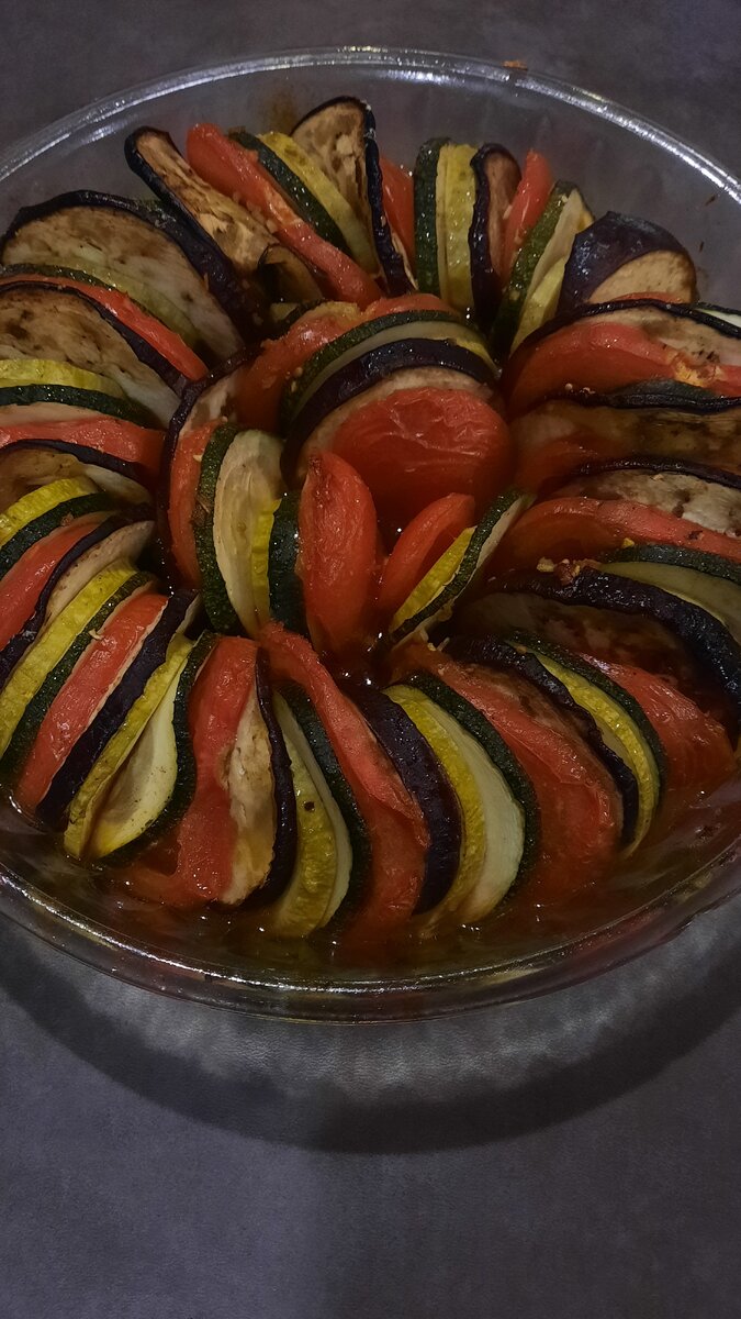 Самый вкусный рататуй в вашей жизни! (Потребуется много времени, но результат вас обрадует) Ингредиенты для соуса пеперад : - перец болгарский 2шт - помидоры 2-3 шт - лук 1шт - чеснок 2 зубчика - лавровый лист, базилик ,перец по вкусу , тимьян - оливковое масло 2ст ложки для жарки Ингредиенты основные: - цукини 2шт - кабачок 1шт - баклажан 1шт ( по желанию, мне по вкусу не понравилось ) - помидор 2-3шт Смесь для покрытия рататуя - оливковое масло 2ст ложки - чеснок 2 зубчика ,соль ,тимьян ,перец по вкусу . Способ приготовления соуса: 1) Очищаем перец от косточек, нарезаем его пополам. Кладём в разогретую духовку до 200° на 20 минут. 2) Помидоры заливаем кипятком на пару минут. Убираем кожуру и режем их на кубики. 3) Очищаем от кожуры лук и нарезаем на кубики. Затем мелко шинкуем лук и чеснок. 4) Ставим сковороду на плиту и наливаем оливковое масло. ( Ждём чуть-чуть чтобы сковородка нагрелась) 5) Обжариваем сначала лук (до прозрачности),затем добавляем чеснок. Через пару м