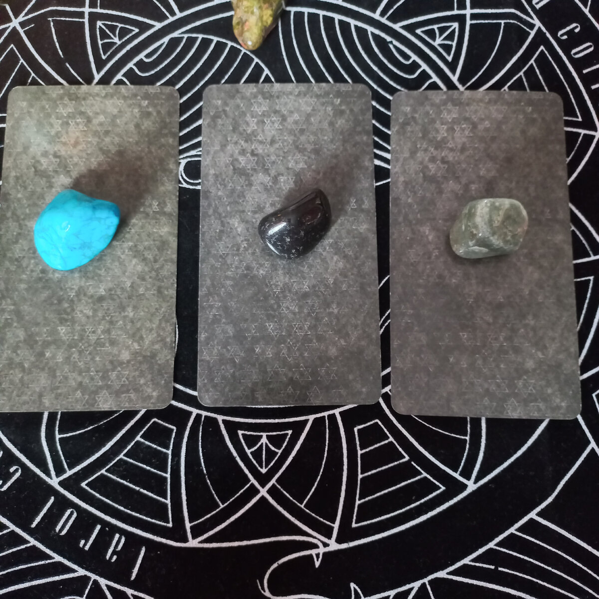 В работе колода Небо и Земля, на три позиции. Также выкладываю ориентиры камушки.