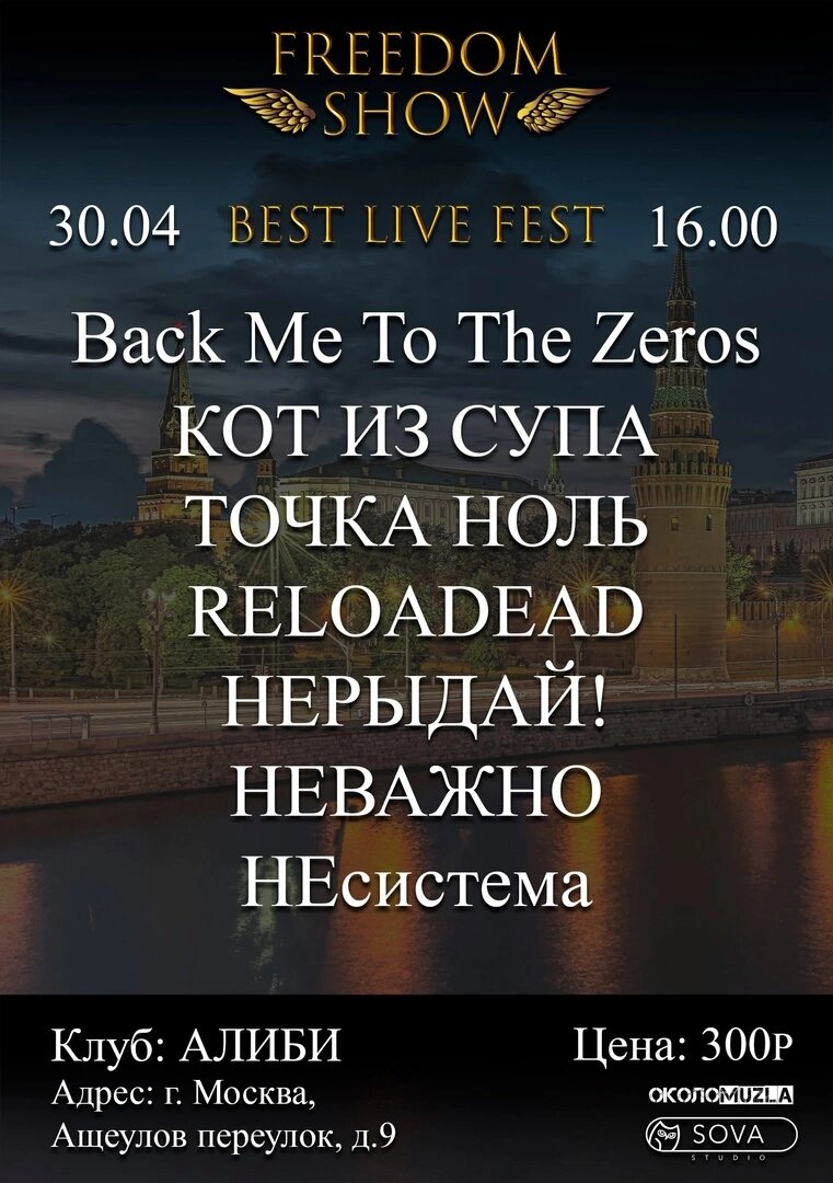 #нерыдайные_концерты #нерыдай Ну что, вот мы и дождались первых майских! 🥳 Погода, как обычно для этого времени года, шепчет что-то своё... 😬 Но в воздухе уже витают эфиры релакса (даже если кто-то собирается все выходные работать... 🙄) Если вдруг вы окажетесь на праздники в Москве, то зовём вас провести их с нами - в воскресенье выступаем на FREEDOM FEST | АЛИБИ 🔥 🎤 Дата : 30.04.23 🎤 Время : 19:00 🎤 Место : Клуб АЛИБИ, Ащеулов переулок, д.9, м. Тургеневская 🎤 Вход : 300 рублей Билеты можно приобрести непосредственно в клубе (не забудьте указать, на какую группу вы пришли). Проводим апрель в стиле рок! 🤘 А потом сразу Мир! Труд! Май! 🎉 Кто хочет сразу же узнавать о всех наших мероприятиях, подписывайтесь на группу НЕРЫДАЙ! Вк: Тг: