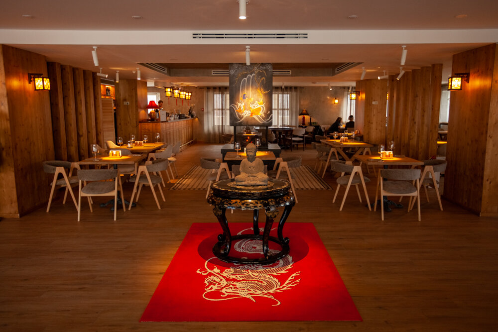 Ресторан привлекает не только прекрасной кухней, но и дизайном аутентичных интерьеров. Статуя Будды, старинные комоды — предметы с историей, которые прекрасно создают нужную атмосферу.