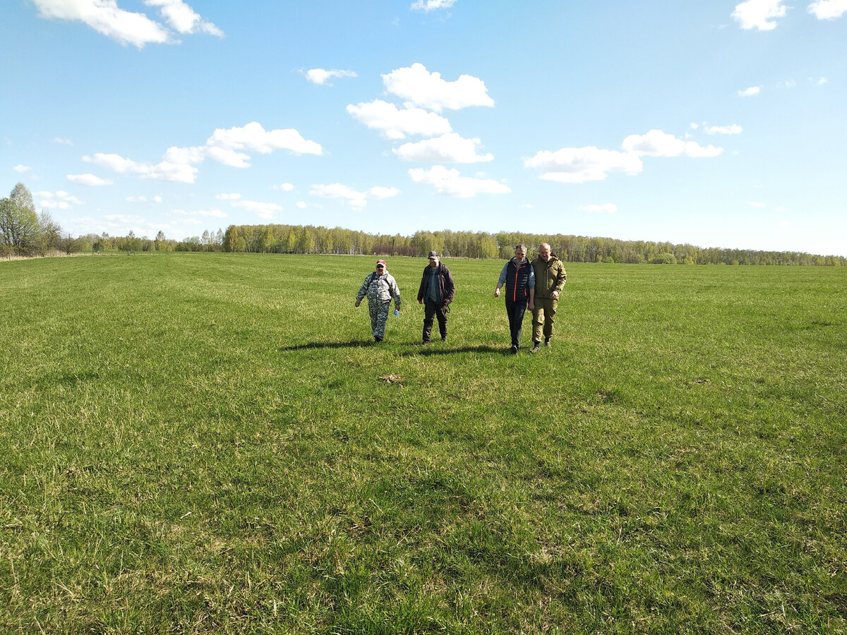 Итак, мы в начале нашего географического треугольника: Тросна-Кривцово-урочище Березуй. Осмотрев мемориал, бодрым шагом через поле и овраг идем на красное знамя, развевающееся на самой макушке высокого дерева - там нас ждет Николай.