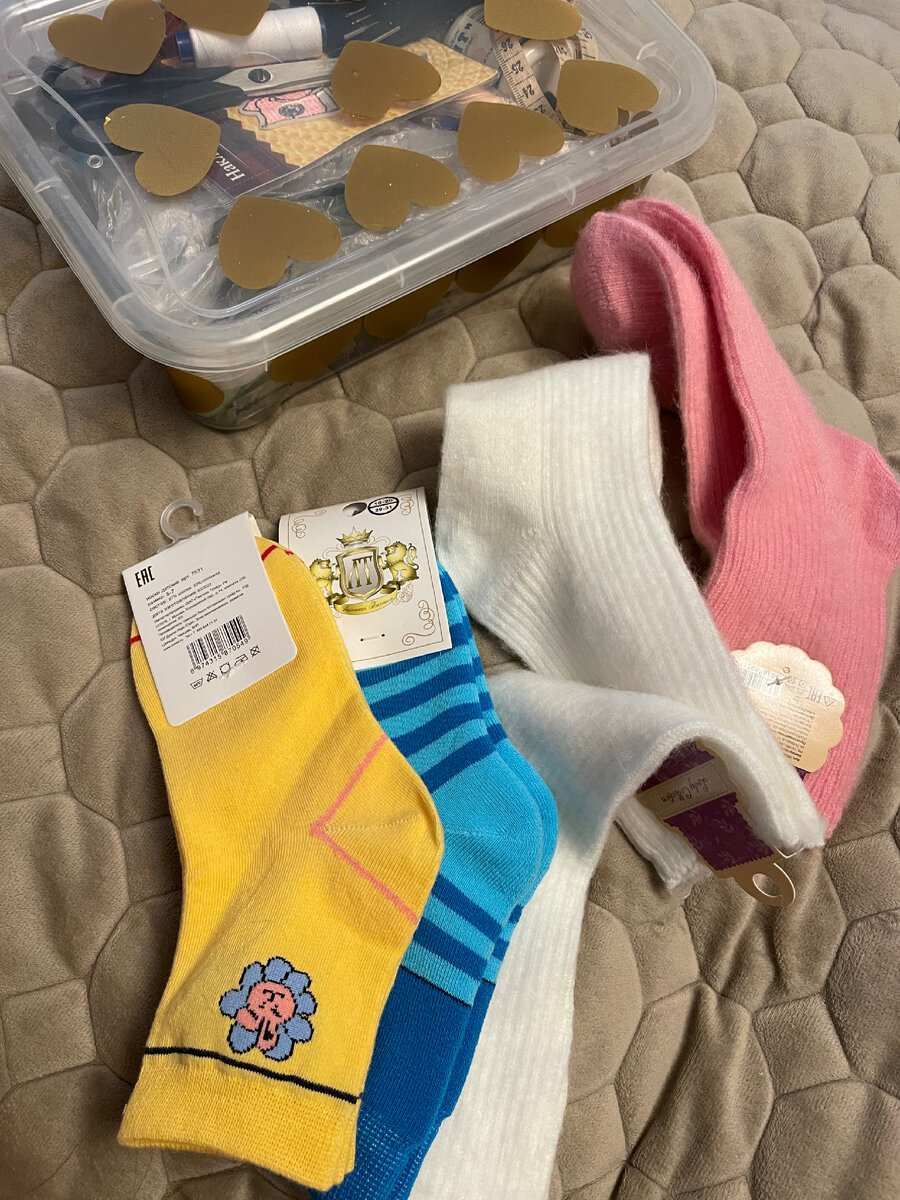 Ну конечно же игрушки))). К слову сказать, шить я не умею. Вчера ночью нашла кучу видео в интернете про игрушки из носков. Какое же их огромное разнообразие, можно сшить всё что угодно. И Мишку, и Единорога, и Обезьянку, и Зайчика) Пошла в фикс прайс и выбрала подходящие носочки. 50-100р каждая пара. Лучше выбирать волосатые носочки, или махровые, на них не видно погрешности шитья. Видео длится 9 минут, а шила я каждого зайчика по 2 часа))))))) Там все очень просто, справится и ребенок. Вечер пролетел молниеносно, я получила массу классных эмоций. Всем советую эту медитацию. Мои девочки сказали, что теперь это их любимые игрушки. Это дает мне массу сил шить дальше. Так как я не швея, то и всяких бусинок и украшалок у меня нет. Вместо глаз старые добрые пуговицы. Те самые пуговицы из моего детства. Достала я свой советский ящик Пандоры, и прямо окунулась в то время. Вспомнила все до одной пуговки. Как я их перебирала, рассматривала. А теперь их разглядывают мои дочки. Это очень класс