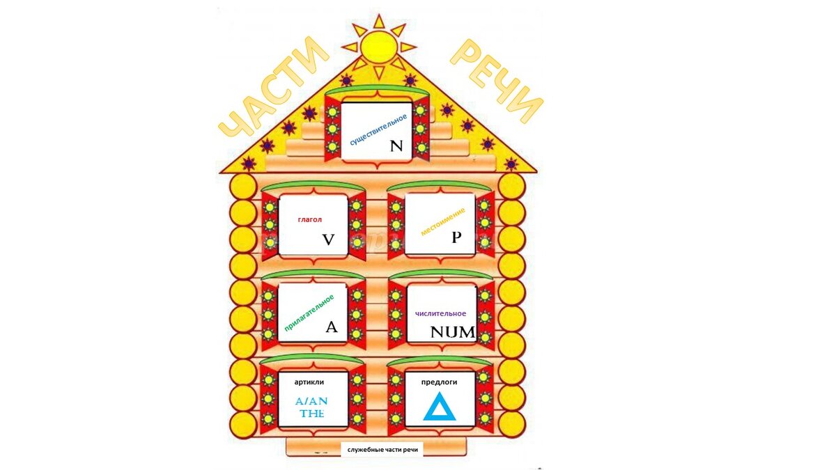 Артикль – это служебная часть речи, которая сама по себе ничего не значит и на русский язык не переводится, в связи с чем вызывает массу трудностей у всех русскоговорящих студентов. Если мы внимательно посмотрим на «ДОМ» Частей речи, то увидим, что главенствующую позицию здесь занимает СУЩЕСТВИТЕЛЬНОЕ. На «РАБОТЕ» СУЩЕСТВИТЕЛЬНОЕ выступает в роли ПОДЛЕЖАЩЕГО – «генерального директора» всего ПРЕДЛОЖЕНИЯ, что еще больше добавляет ему значимости, поэтому неудивительно, что именно эта часть речи требует к себе особого внимания. Существительные обожают чтобы их сопровождали верные слуги и подданные. Слугами существительных являются артикли. Они бывают двух видов: неопределенный и определенный. Сразу вспоминается: 1998 год. Урок английского языка в школе для Новых Русских. Учитель объясняет: - Неопределенный артикль на русский язык переводится «типа», а определенный – «конкретно». В этом коротком анекдоте вся суть английских артиклей: - неопределённый артикль употребляется с исчисляемым