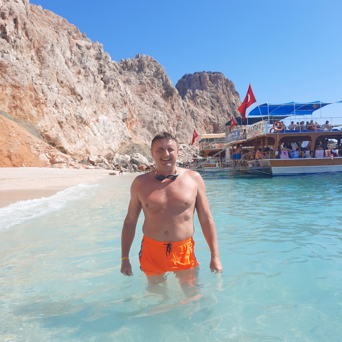 Приятно удивило Средиземное море. Оно оказалось очень чистым и по прозрачности не уступало нашему Байкалу. Единственное, что оказалось не очень комфортным, так это то,что вода была настолько теплой, что даже не освежала. Поэтому мы особенно любили искупнуться вечером, когда вода становилась хоть чуточку прохладней. Прохладней, это конечно, громко сказано... Вечером вода была просто не настолько теплой, как днем. Ну, а воздух, кстати, и вечером был жарким, поэтому с заходом солнца было так же душно. Когда мы шли искупаться перед сном, местные удивленно спрашивали: “Вы в море купаться?! Вы что, моржи?!” Нас это так забавляло... В эти минуты я вспоминал свое детство, когда мы с пацанами шли купаться в реке Белой, предварительно разжигая большой костер, чтобы потом стуча зубами, скукоженными от холода, в мелкой дрожи и синими губами, согреться после. В общем, в темное время суток купаться было приятно, так как был хоть какой-то шанс поймать чувство свежести и прохлады. Переодеваться можно