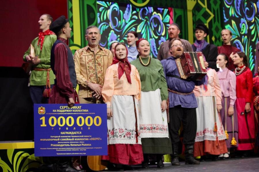 Губернатор Челябинской области Алексей Текслер наградил сертификатом на один миллион рублей коллектив «Оберег» из Миасса. Южноуральские гармонисты завоевали диплом первой степени на Всероссийском фестивале-конкурсе любительских творческих коллективов. Подарок от главы региона ансамбль сможет направить на свое развитие: покупку костюмов, инструментов или организацию гастролей. Вручение состоялось на церемонии открытия фестиваля-конкурса «Гармония» в Челябинске, куда съехались гармонисты со всего Уральского федерального округа. «Дорогие друзья, гармонь любят в Челябинской области. В народе говорят, что когда играет гармонь, то поет душа. Я считаю, что эта замечательная фраза может быть девизом нашего фестиваля-конкурса. Любой коллектив, который выступит сегодня, является победителем», – приветствовал участников Алексей Текслер. По видеосвязи к собравшимся в зале обратился полномочный представитель президента РФ в УрФО Владимир Якушев. «Рад приветствовать вас на фестивале-конкурсе гармони