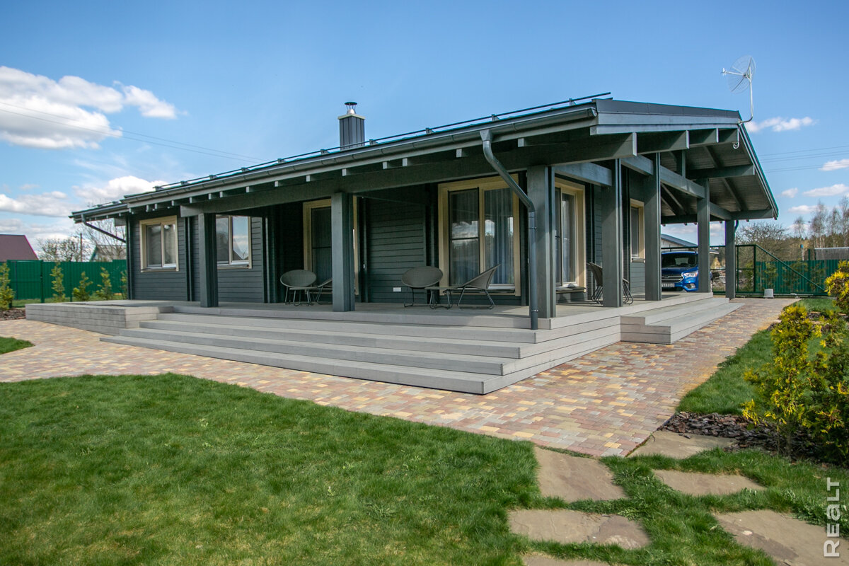 Семья минчан пять лет назад стала владельцем своего загородного жилья и теперь большую часть недели предпочитает жить в деревне рядом с лесом. Дом деревянный, но от классических срубов он сильно отличается — под одной крышей довольно компактного строения разместились террасы и парковка, внутри оптимальная планировка и стильный интерьер. Строился он по самой современной технологии двойного клееного утепленного бруса, что вылилось в минимальные расходы на отопление. В общем, объект со всех сторон интересен, и мы напросились в гости к владельцам, посмотреть, как это всё выглядит вживую. Партнер этого материала - компания 101DOM, которая и для вас может построить теплый уютный дом.