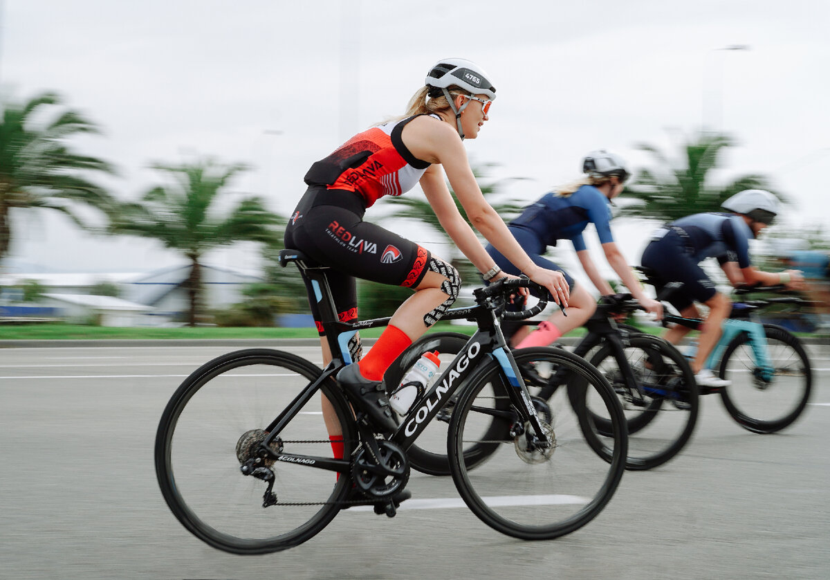 Навыки управления велосипедом — одна из ключевых зон развития для начинающих триатлетов. Уверенная техника владения велосипедом необходима для комфортного преодоления препятствий и поворотов. Кроме того, важно уметь сохранять прямолинейность движения, доставая бутылку с водой или оглядываясь назад. 4 простых упражнения, которые вы можете выполнять самостоятельно или с друзьями, помогут вам в совершенствовании навыков и техники управления велосипедом. Эти упражнения будут полезны как для начинающих триатлетов, так и для велосипедистов. 1. «Сидеть на колесе» Для выполнения упражнения вам понадобится партнёр. Суть в том, что один гонщик едет впереди, а второй двигается за его колесом, повторяя траекторию движения. Вам необходимо держать комфортное и контролируемое расстояние между велосипедами. Оно не должно быть слишком близким, чтобы случайно не задеть колесо партнёра. Но и дальше 1 метра держаться не нужно. Велосипедист впереди едет плавно, без резких ускорений, торможений и поворотов.
