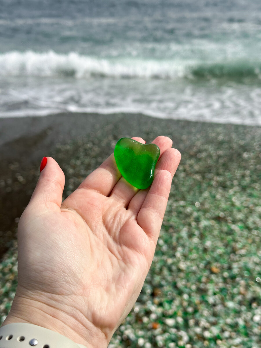 Когда-то рядом с этим местом находилась огромная зловонная свалка, мимо которой без противогаза лучше было не ходить. Периодически мусор горел, отравляя всю округу дымом. Местные жители не только не приезжали сюда отдыхать и купаться, но и стремительно проезжали мимо с закрытыми окнами, чтобы не чувствовать этот ужасный запах. И так наверное и продолжалось бы, если бы не нагрянувший владивостокский саммит АТЭС, изменивший судьбу помойки. Сегодня речь пойдёт о знаменитой бухте Стеклянной, чей берег усыпан стеклом, сверкающим словно изумрудные камни. Располагается это чудо природы во Владивостоке, на северном берегу залива Петра Великого Японского моря. Является частью Уссурийского залива. О стекляшке, как зовут её местные, я узнала задолго до того, как мы приехали в Приморье. Отзывы о месте слышала разные, кто-то восторгался, а кто-то не понимал всеобщей эйфории и не видел в этом ничего красивого. Но пока своими глазами не увидишь – не поймёшь как оно на самом деле. Бухта Стеклянная был