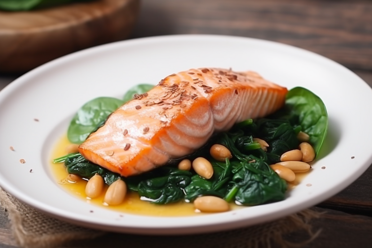 1. Лосось с кедровыми орехами и шпинатом