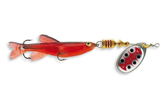 Вращающаяся блесна, соединенная с реалистичной имитацией рыбки, привлекает хищника лучше, чем каждая из этих приманок по отдельности. Комбинация из вращающегося лепестка и укрепленной за ним имитации рыбки существует в двух вариантах: с силиконовой рыбкой и воблером. У некоторых приманок тройник слишком глубоко погружен в тело силиконовой рыбки. Выбирайте модель, у которой тройник максимально открыт, лучше всего если он свободно закреплен в петле на хвосте силиконовой рыбки.